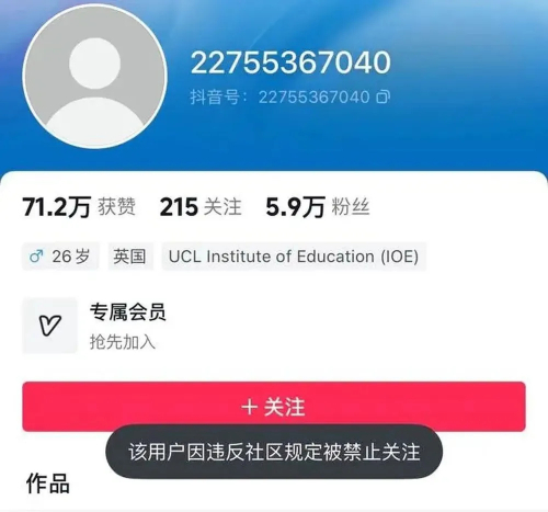 梁某的短视频账号已被禁止关注。图片来源:梁某短视频账号截图 梁某还否认了通过设置“反差人设”获利,并向记者展示自己兼职做跑腿时多个和客户交流的截屏及转账记录,“我没有做过留学中介,更没有骗过钱,我在国外靠跑腿赚生活费。如果我真的成了网红,还用靠跑腿赚钱吗?” 目前,梁某已经被平台禁言,私信功能也已经被封。 来源:“中国新闻网”微信公众号 作者: 编辑:李佳萌 |