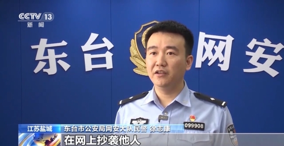 东台市公安局网安大队民警 徐志康:在网上抄袭他人“一女子相亲点餐花费三万多人民币”文案后,自行出镜摆拍,模拟接受记者采访的场景。