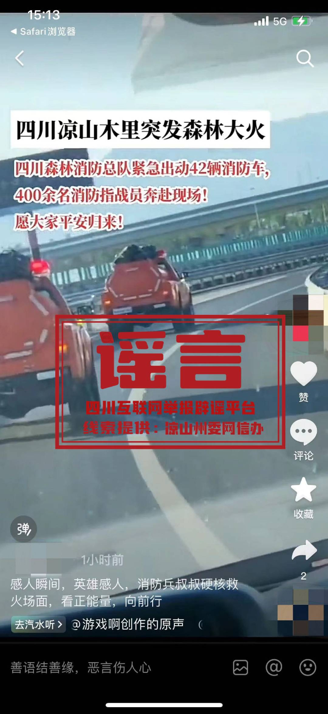 真相:近日,有网民发视频称,四川凉山木里突发森林大火。经当地网信部门联动应急管理局核实,四川凉山木里近日未发生森林大火。公安机关提醒:互联网并非法外之地,请广大网民文明上网,要从官方渠道获取权威信息,对于网络来源不明信息,不得随意转发或发布,不造谣、不信谣、不传谣,造谣传谣者必将受到法律惩罚。