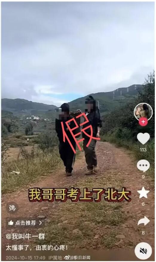 该事件系网红博主虚假摆拍。视频中涉及的“家庭贫困被迫辍学”“哥哥考上北京大学”均属杜撰,主播支付了400元找群演,请男孩自导自演、剧本拍摄短视频。昂地公安机关已依法关停涉案违规账号2个,对博主解某某进行行政处罚,对杨某等“群演”进行批评教育。