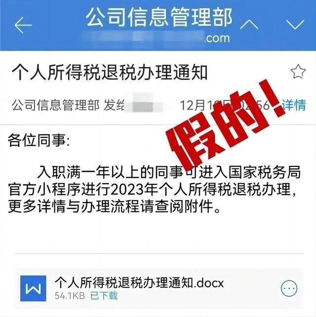 虚假“公司内部办理退税通知”(图源江苏警方微信公号)
