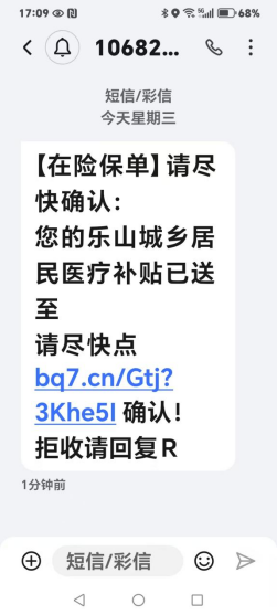 近期,部分群众反映收到了“关于乐山城乡居民医疗补贴已送达”的短信。