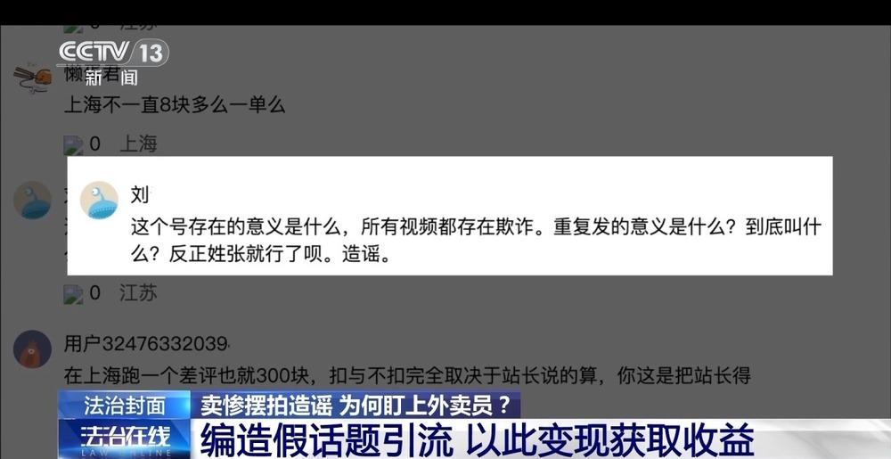 记者梳理发现,不只是外卖员,还有一些职业身份也成为不法牟利者造谣的对象,比如说针对网约车司机的,说某司机拒载,与乘客冲突的,比如说针对快递员的,说快递员偷客户快递、快递员暴力分拣,类似这样的短视频都曾一时之间引发众多关注,但事后却被证明是谣言。那么,为什么造谣者会盯上这些就业者呢?