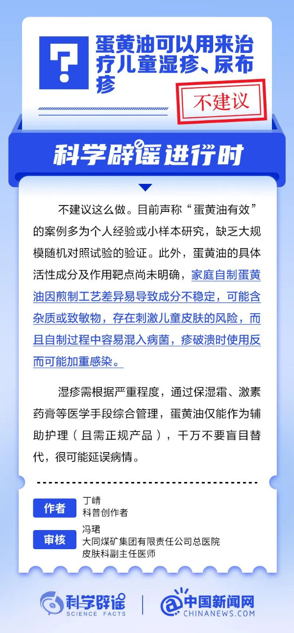 蛋黄油可以用来治疗儿童湿疹、尿布疹?