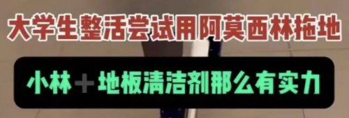 相关视频称用阿莫西林溶液拖地“超方便”(社交平台视频截图)