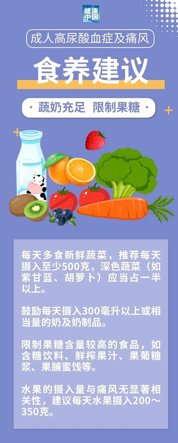 高尿酸血症与痛风的发生与膳食及生活方式密切相关,尤其是长期摄入高能量食品、大量酒精及高果糖的饮料。