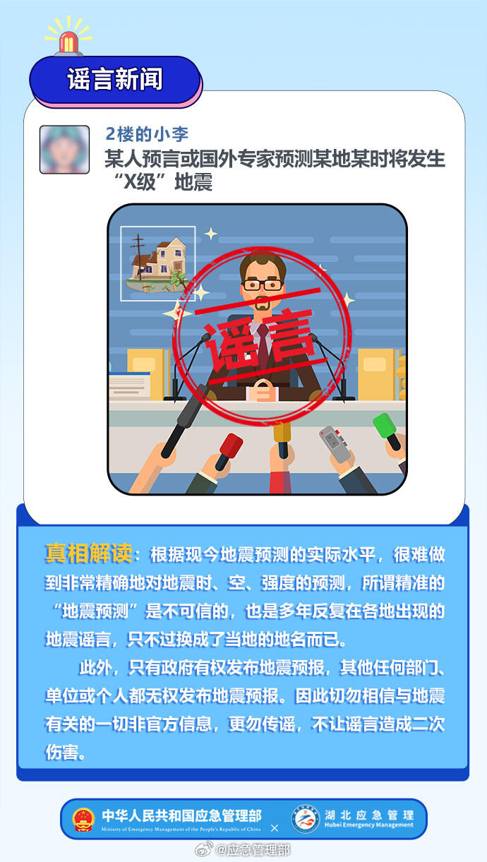 网传广州将有6级以上强震?官方回应 2025-04-21 14:42 据媒体报道,近日,有一位来自广东的微博认证为科普的博主发文称:根据动物行为异常、地磁波动、经验数据分析等,判断将在48小时内发生6级以上强震,引发关注。 4月17日晚,广州市地震局表示,动物异常行为与地震无必然因果关系。18日,广州市应急管理局回应,目前,广州市地震活动基本正常,地球物理观测没有显著变化。请广大市民,切勿轻信和传播未经地震管理部门证实的消息。 动物异常的因素多种多样,宏观动物异常与地震发生没有一一对应的关系。此外,根据现今地震预测的实际水平,很难做到非常精确地对地震时、空、强度的预测,所谓精准的“地震预测”是不可信的,也是多年反复在各地出现的地震谣言,只不过换成了当地的地名而已。 第17个全国防灾减灾日将至,在此郑重提醒大家:只有政府有权发布地震预报,其他任何部部门、单位或个人都无权发布地震预报。因此切勿相信与地震有关的一切非官方信息,更勿传谣,不让谣言造成二次伤害。