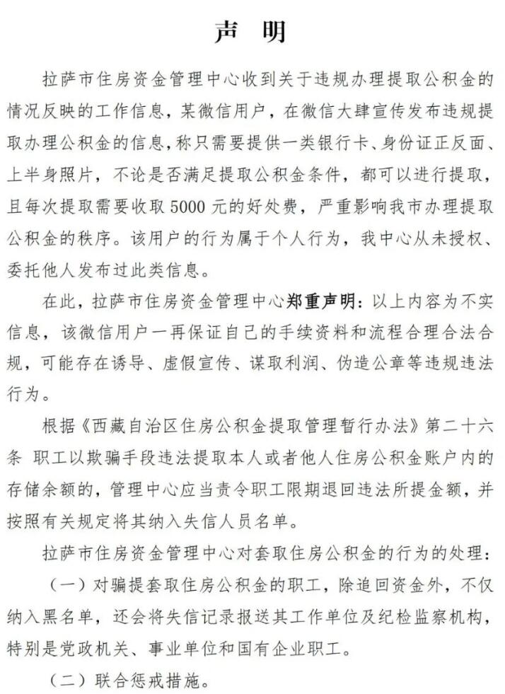 拉萨市住房资金管理中心郑重声明