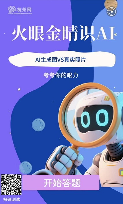 在这样的背景下,我们必须提高对AI虚假信息的辨别能力。杭州网数据酷新闻工作室推出了H5互动游戏“火眼金睛识AI”,系统会随机给出10道判断题,让用户判断展示的图片究竟是AI生成,还是真实照片。