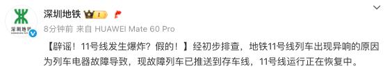@深圳地铁 6月17日通报:经初步排查,地铁11号线列车出现异响的原因为列车电器故障导致,现故障列车已推送到存车线,11号线运行正在恢复中。
