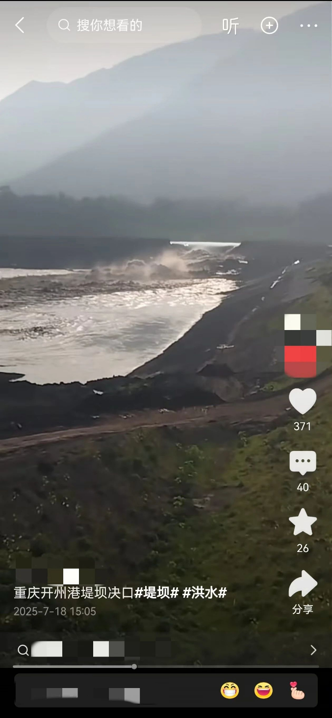 近日,有网民在互联网平台发布信息称“开州港堤坝决口”引发关注。