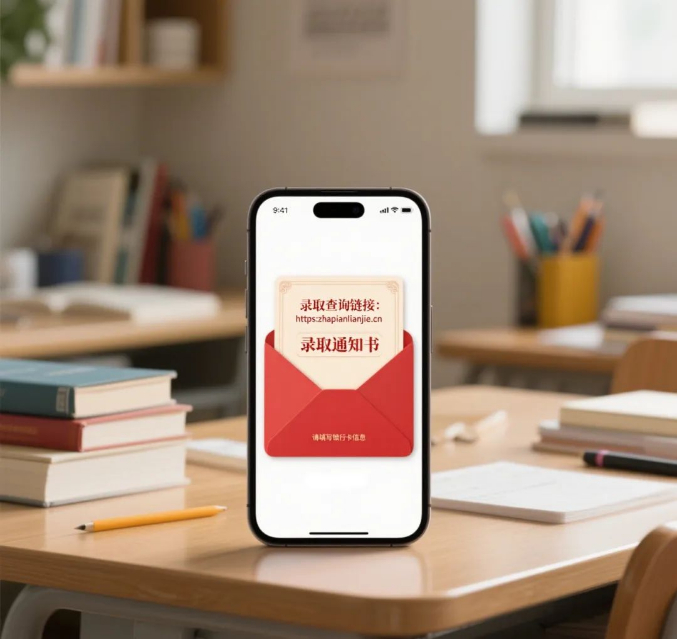 陷阱手法:收到看似正式的“录取通知书”短信或邮件,要求点击链接查询详情或支付“录取确认费。