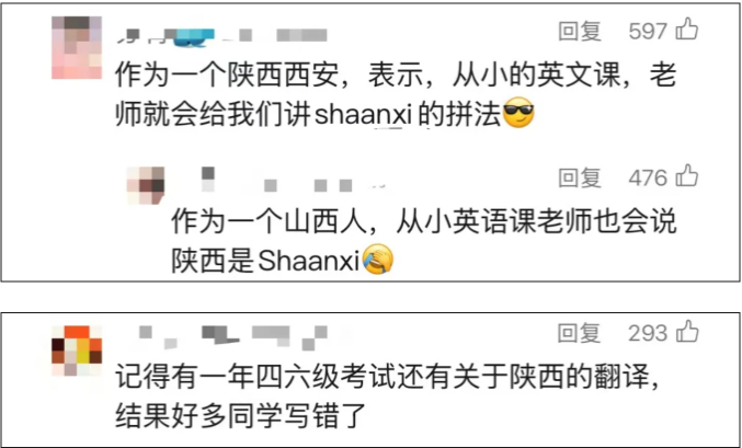 记者注意到,早在2021年,在陕西举办的第14届全运会上,就有不少网友以为是拼写错了。有报道指出,上海地铁陕西南路站更是为此解释了十几次。