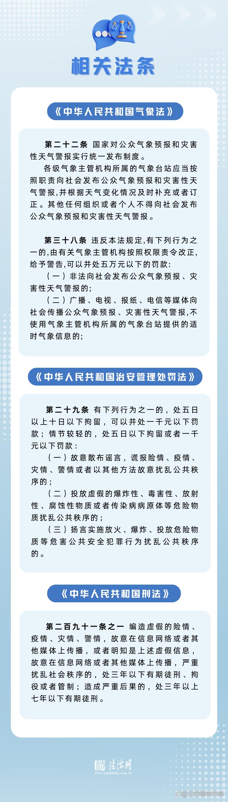 天气预报不仅仅是“明天要不要带伞”这么简单,而是对个人生活、经济生产、安全保障等都至关重要的科学工具。但很遗憾的是,近年来,网上不时有些个人和单位,随意发布虚假天气预报或对天气预报内容进行随意更改,造成不良社会影响。这些网传消息不但不可信,还可能涉嫌违法。