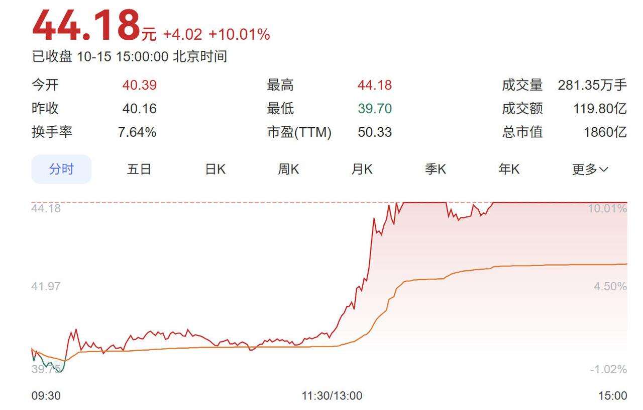 10月15日下午,三花智控股价异动拉升,盘中触及涨停,报44.18元每股。与此同时,三花智控港股也同步拉升,盘中一度涨超13%。