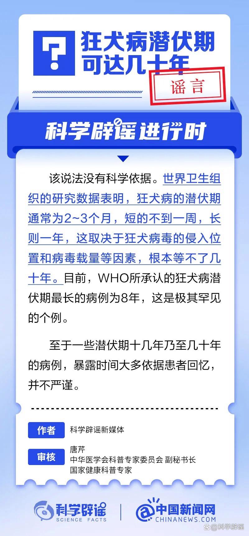 狂犬病潜伏期可达几十年?谣言