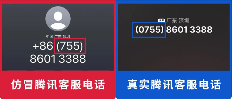 不法分子通过改号软件伪装成腾讯官方客服号码,实际并非微信官方来电。