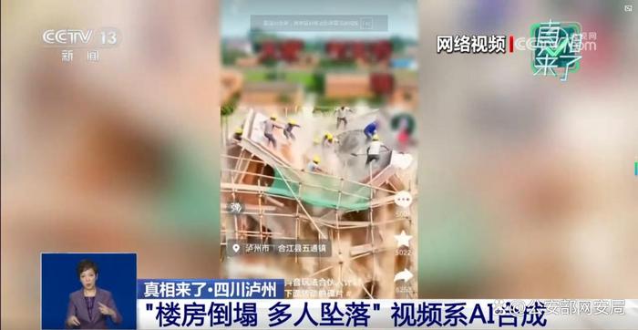 合江县公安局网络安全保卫大队副大队长王佑军:我们第一眼看到这段视频,就判断它是AI合成的,因为视频左下角有明显的AI生成提示标识。但对普通群众来说,对AI合成技术的识别能力有限,分辨不出视频的真假,所以还是引发了大量群众的担忧和网络热议。同时,我们也全面查询了辖区内的接警记录,确认没有收到任何关于合江县发生此类重大建筑安全事故的报警,这进一步印证了视频的虚假性。