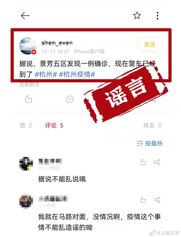 捉谣记|杭州景芳五区发现一例确诊?谣言!