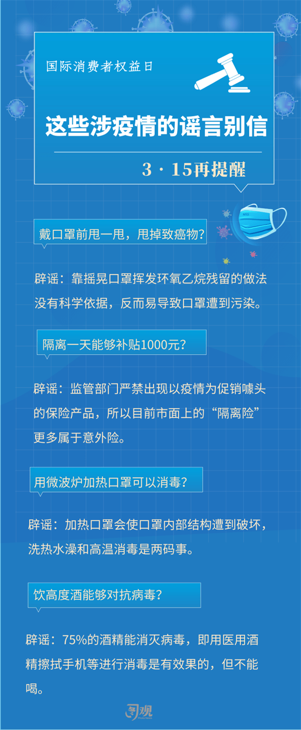近期,全国多地出现成簇本土病例,又迎来了一波境外输入病例与本土病例叠加的严峻考验。与此同时,在防疫期间,以各种名义、理由、渠道进行诈骗的案例和谣言层出不穷。防骗、打假和防疫同样重要,3•15消费者权益保护日到了,这些谣言和骗局千万不要再信了。