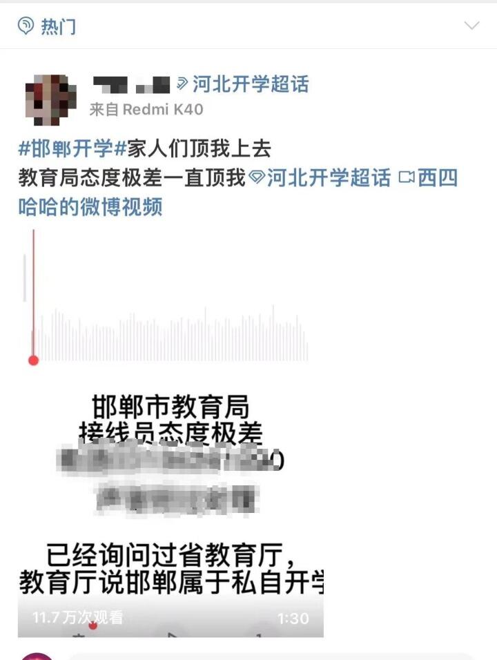 微博网友发布的一段致电邯郸市教育局的录音引发热议